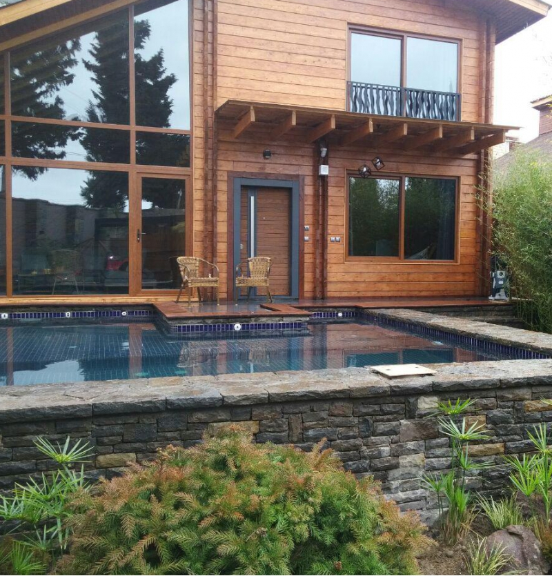 فيلا خشبية رائعة خاصة وجذابة للإيجار مع مسبح في الهواء الطلق وحوض استحمام بالماء الساخن، وتحتوي الغرف على سرير مزدوج والمفروشات أنيقة للغاية ونظيفة مع خدمة الفطور و خدمات البلياردو وكرة القدم، وموقف سيارات.